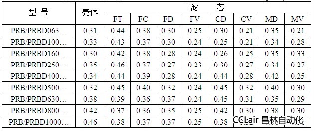 、額定流量下的清潔濾芯壓降(單位:1×105Pa 介質參數:
