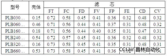 4、額定流量下的清潔濾芯壓降(單位:1×105Pa 介質(zhì)參數(shù):30mm2/s 0.86kg/dm3)