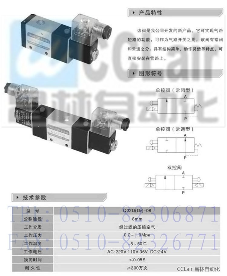 產(chǎn)品: 瀏覽次數(shù):997Q22D2-08,二位二通電磁換向閥
