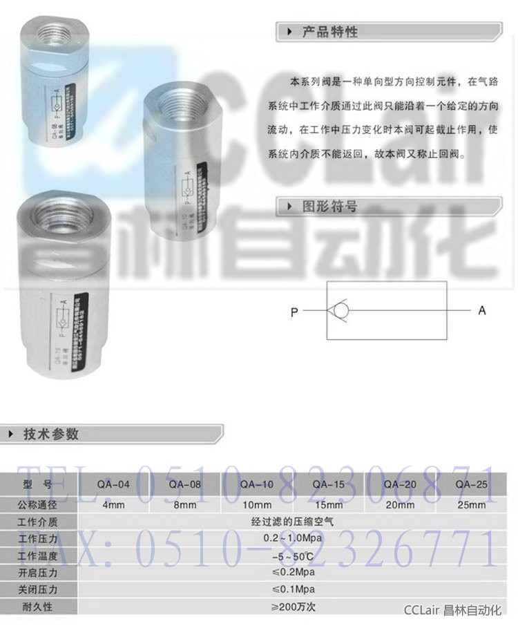 QA-04,QA-08,QA-10,QA-15,QA-20,QA-25,單向閥,生產(chǎn)廠家,價(jià)格