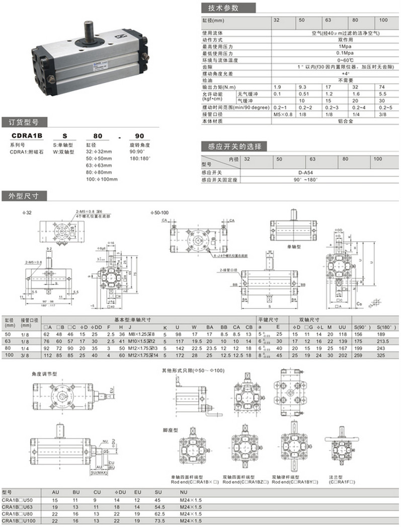 CDRA1BW63-90,CDRA1BW80-90,CDRA1BW100-90,CDRA1BW63-180,CDRA1BW80-180,CDRA1BW100-180,