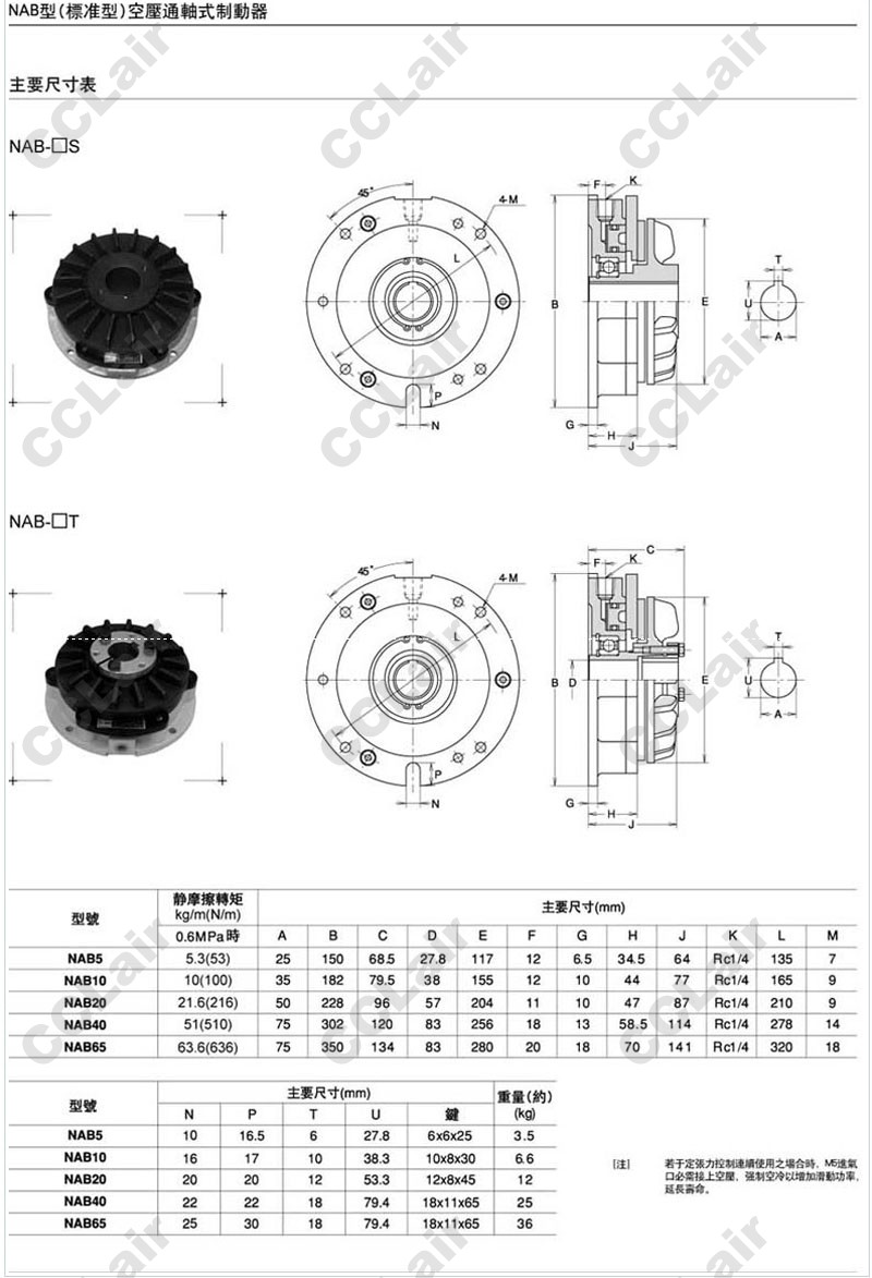 詳細(xì)信息 NAB5,NAB10,NAB20,NAB40,NAB65,通軸式制合器,CCLair
