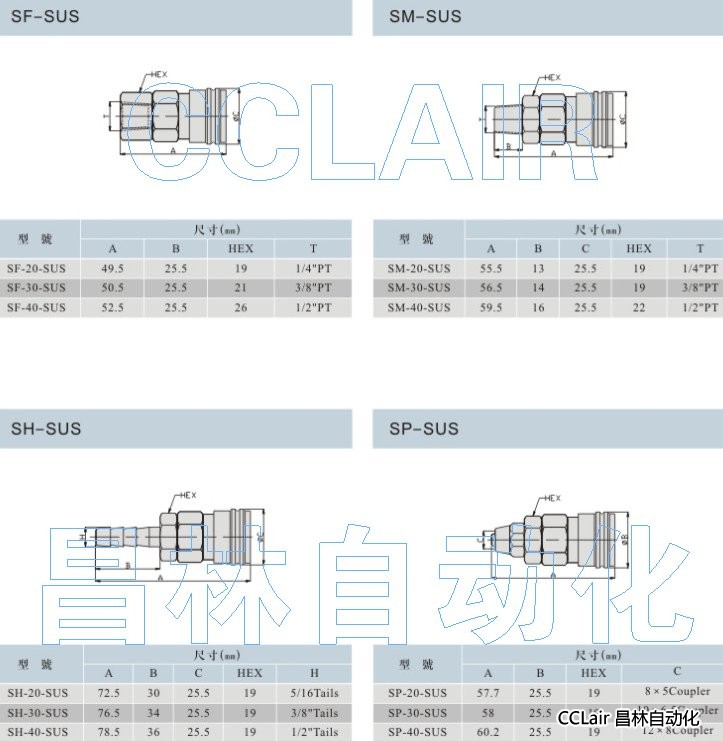 SF-20-SUS,SF-30-SUS,SM-20-SUS,SH-20-SUS,SP-20-SUS,SP-30-SUS,雙手操作快換接頭