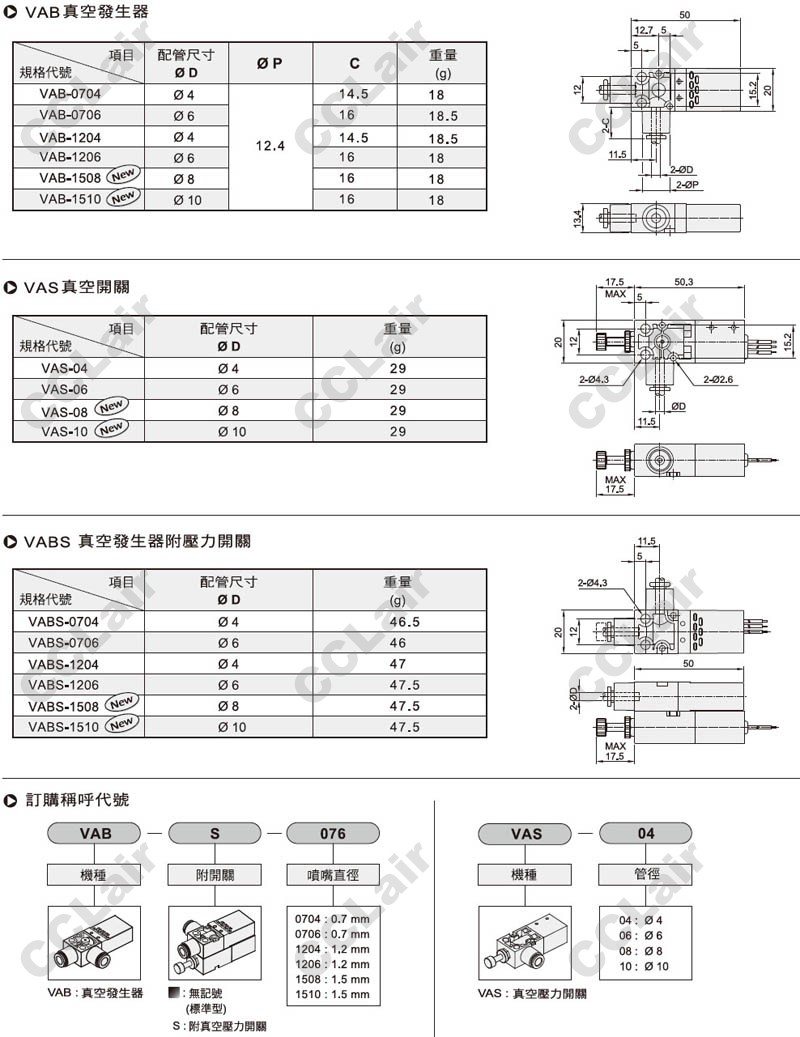 詳細(xì)信息 氣立可(chelic),VAB-0704,VAB-1204,VAB-1508,VAS-04,VAS-06,VAS-08,VABS-0706,VABS-1204,VABS-1508,
