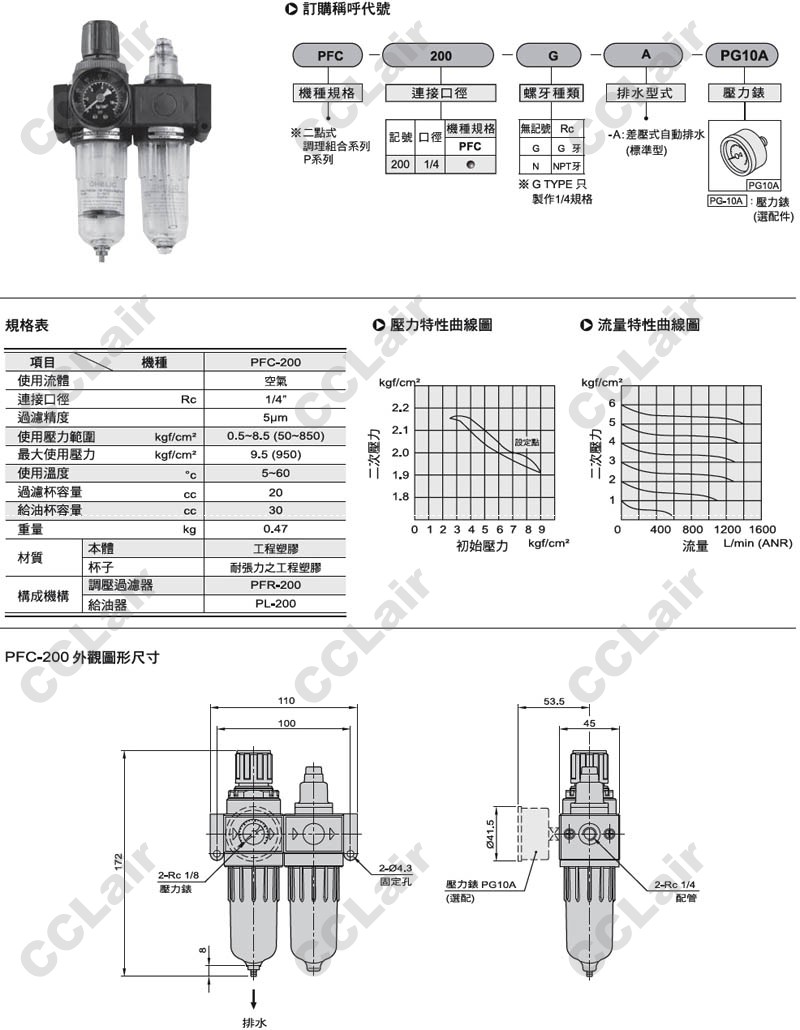 氣立可(chelic),PFC-200-G-A-PG10A,PFC-200-N-A-PG10A,PFC-200-A-PG10A,空氣調(diào)理組合