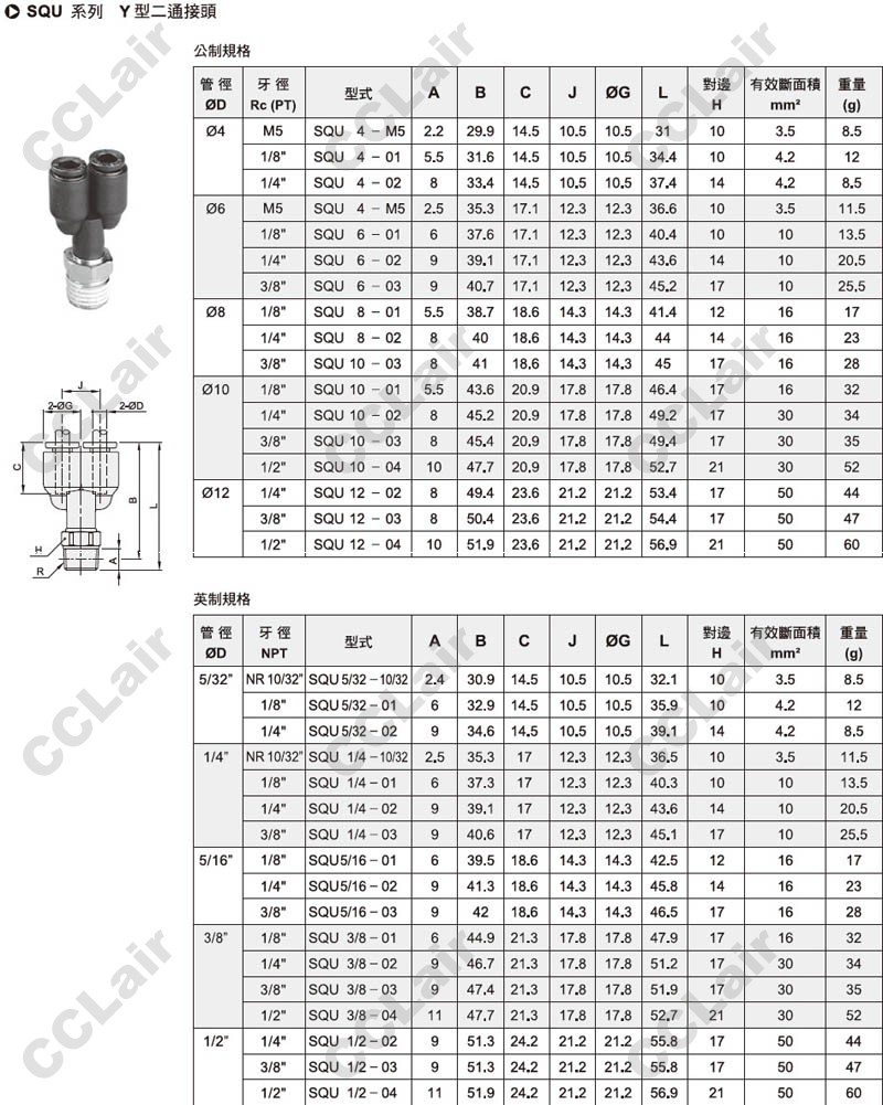 SQU4-M5,SQU4-01,SQU4-02,SQU6-M5,SQU6-01,SQU6-02,SQU6-03,SQU8-01,SQU8-02,SQU8-03,SQU10-01,Y型二通接頭