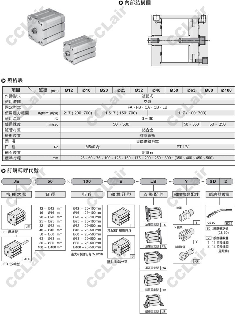 氣立可(chelic),JE12*25,JE20*50,JE32*75,JE40*100,JE50*125,JE63*25,JE80*50,JE16*75,