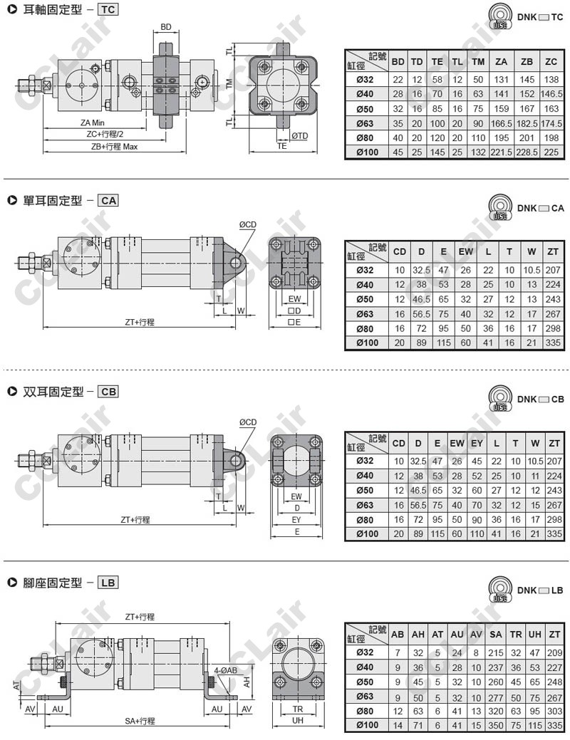 氣立可(chelic),DNK40*50,DNK50*75,DNK63*50,DNK100*400,DNK32X125,DNK75X300,鋁合金剎車氣缸