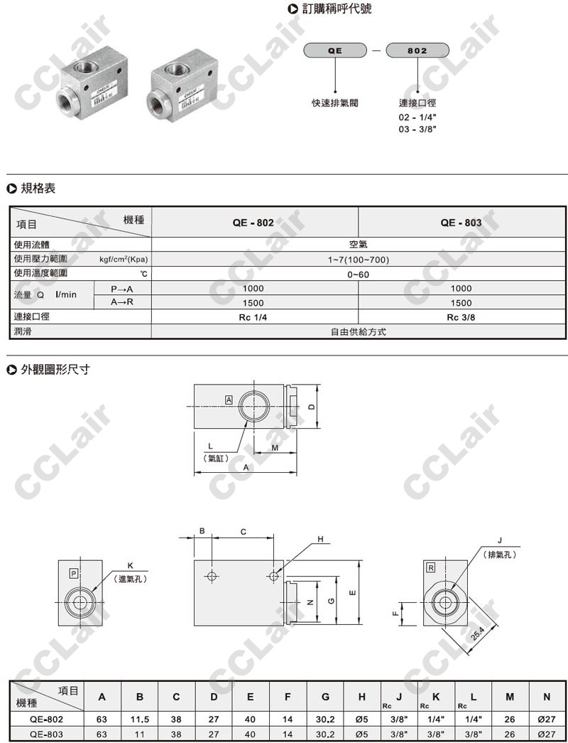 氣立可(chelic),QE-802,QE-803,快速排氣閥