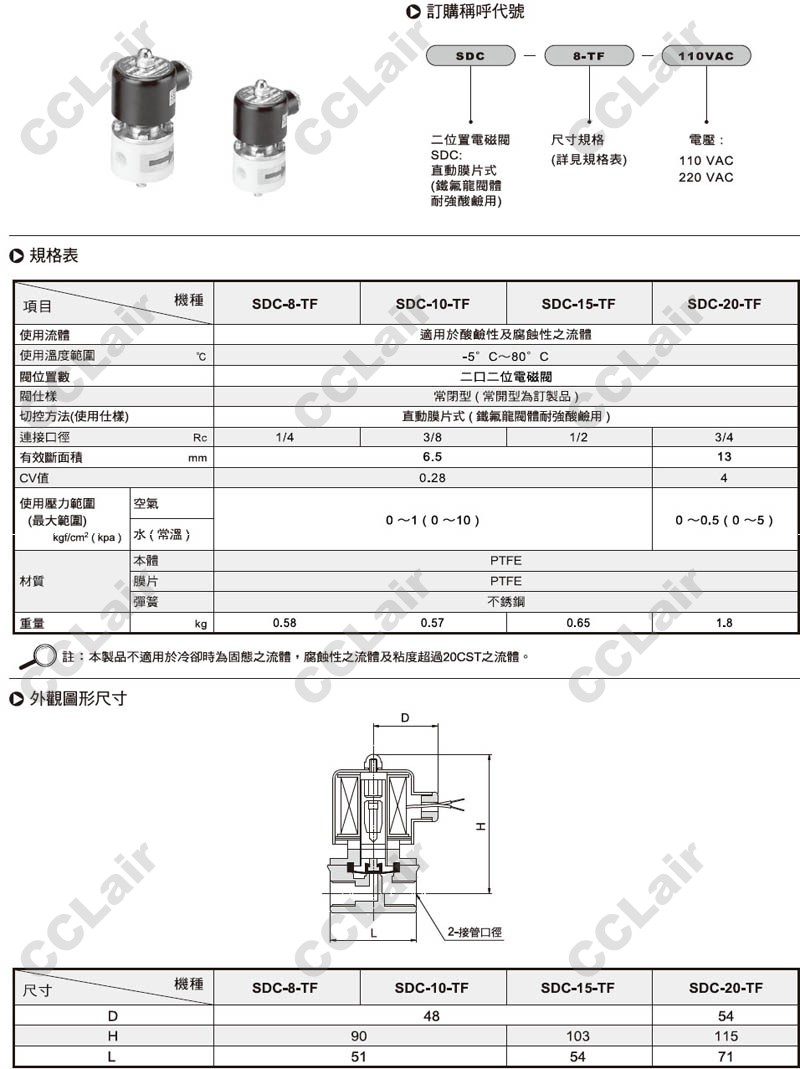 氣立可(chelic),SDC-8-TF-110VAC,SDC-10-TF-220VAC,SDC-15-TF,SDC-20-TF,電磁閥