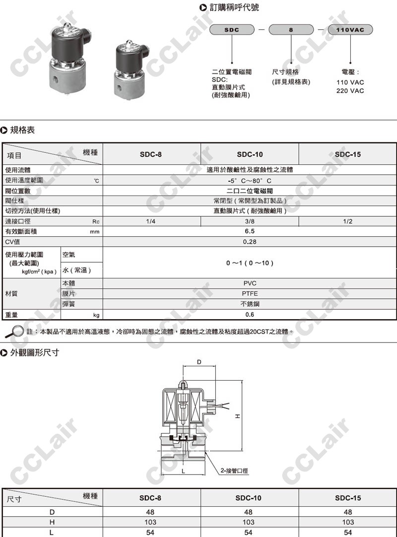 氣立可(chelic),SDC-8-220VAC,SDC-10-220VAC,SDC-15-220VAC,SDC-8-110VAC,電磁閥