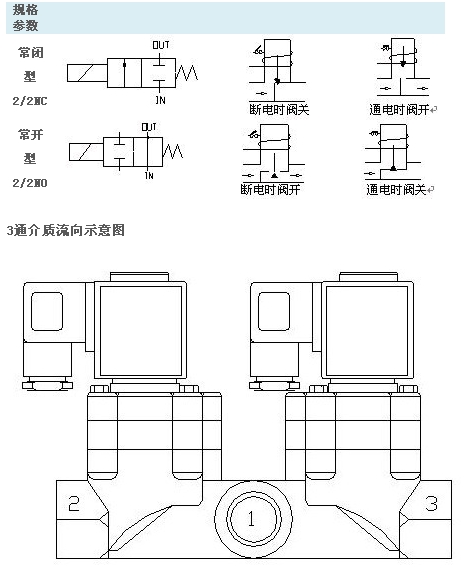 2:當(dāng)電磁閥線圈斷電時,2與1關(guān)閉,3通向1通。