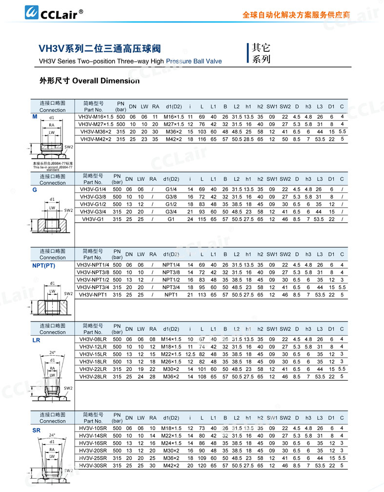 詳細(xì)信息 VH3V-08LR,VH3V-12LR,VH3V-15LR,VH3V-18LR,VH3V-22LR,VH3V-28LR,二位三通高壓球閥