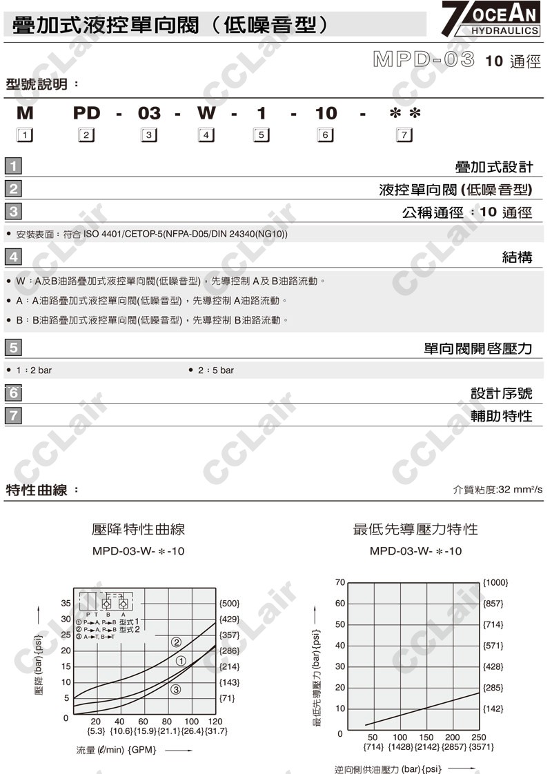 MPD-03-W,MPD-03-A,MPD-03-B,MPD-03-A-2-10,MPD-03-B-1-10,7OCEAN七洋疊加式液控單向閥