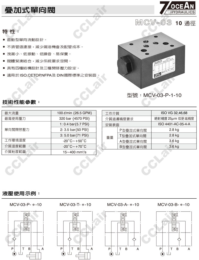MCV-03-P,MCV-03-T,MCV-03-A,MCV-03-B,MCV-03-B-2-10,MCV-03-P-1-10,7OCEAN七洋疊加式單向閥