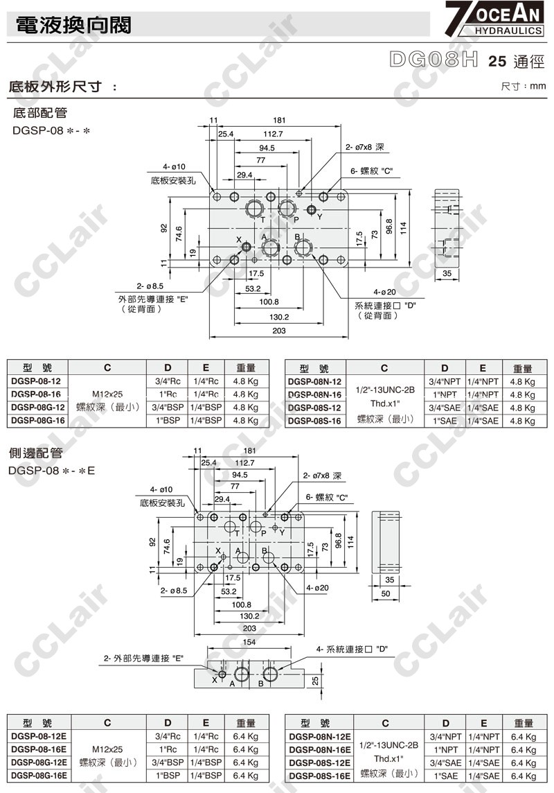 DG08H-0,DG08H-1,DG08H-2,DG08H-3,DG08H-5,DG08H-6,DG08H-7,DG08H-8,DG08H-11,DG08H-22,DG08H-31,DG08H-33,7OCEAN七洋電液換向閥