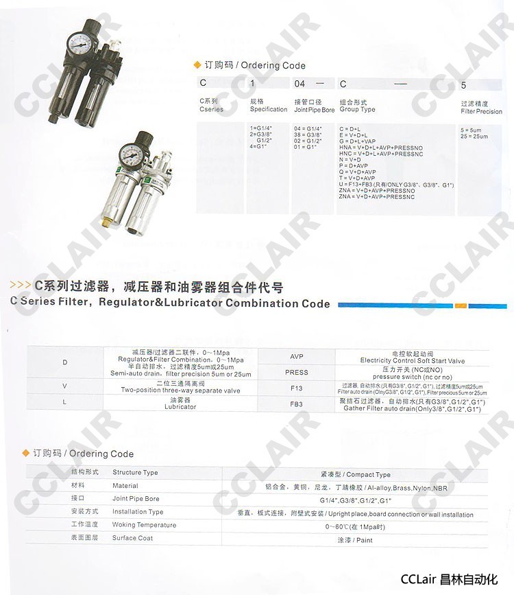 詳細(xì)信息 C1-04C,二聯(lián)件 C1-04D,空氣過濾減壓閥 C1-04L,油霧器