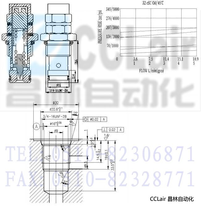 當(dāng)P口壓力未達(dá)到彈簧設(shè)定壓力的85%時,P到T不通超過85%并繼續(xù)升高時,P到T開始溢流,直到彈簧的最高設(shè)定壓力。