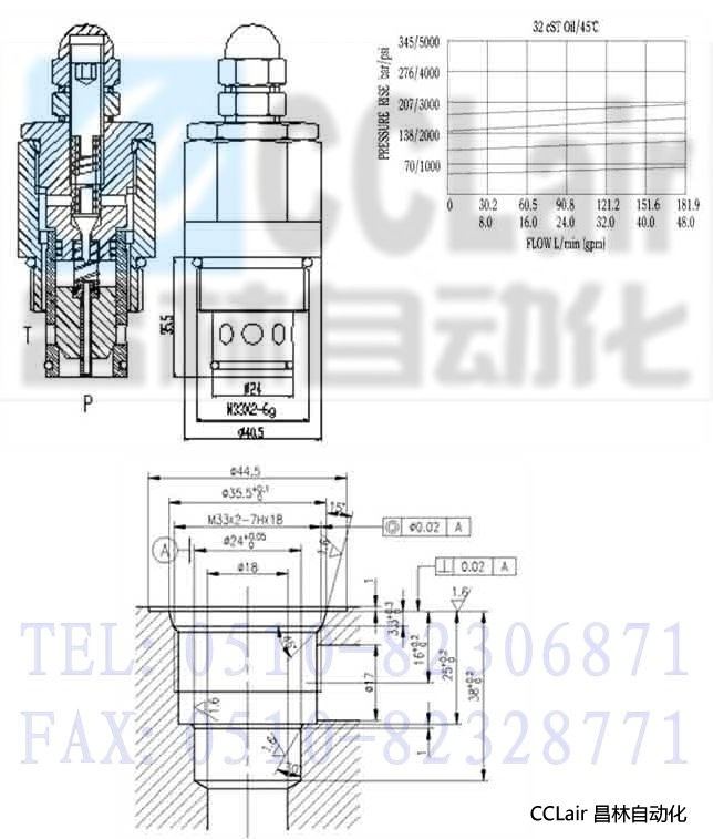 當(dāng)P口壓力未達(dá)到彈簧設(shè)定壓力的90%時(shí),P到T不通超過90%并繼續(xù)升高時(shí),P到T開始溢流,直到彈簧的最高設(shè)定壓力。