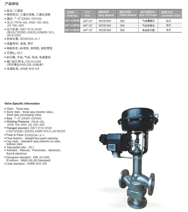 RV-V3-DN25,RV-V3-DN40,RV-V3-DN50,RV-V3-DN65,RV-V3-DN80,RV-V3-DN100,RV-V3-DN125,RV-V3-DN150,三通調(diào)節(jié)閥