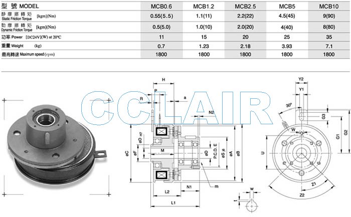 MCB0.6,MCB1.2,MCB2.5,MCB5,MCB10,MCB20,MCB40,電磁式離合器