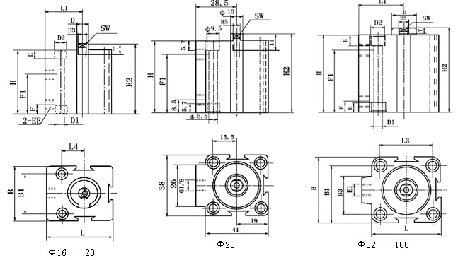 | 20 | 32 | 20 | - | 10 | 5.5 | 9.5 | M5 | M5 | 5.7 | 6 | 40 | 24 | - | 15 | 8 | 8 |