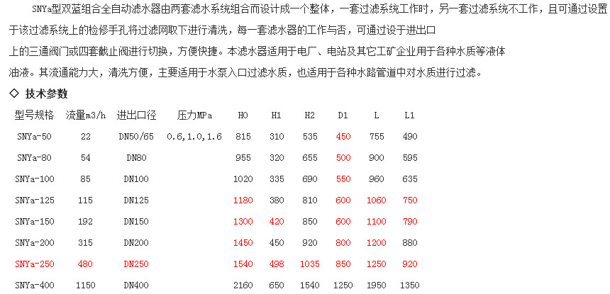 詳細信息 SNYa-50,SNYa-80,SNYa-100,SNYa-125,SNYa-150,SNYa-200,SNYa-250,SNYa-400,雙藍組合全自動濾水器