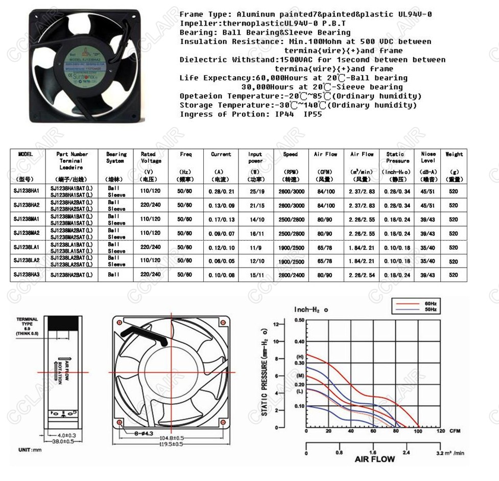 SJ1238HA1,SJ1238HA2,SJ1238MA1,SJ1238MA2,SJ1238LA1,SJ1238LA2,SJ1238HA3,SANJU 軸流風機