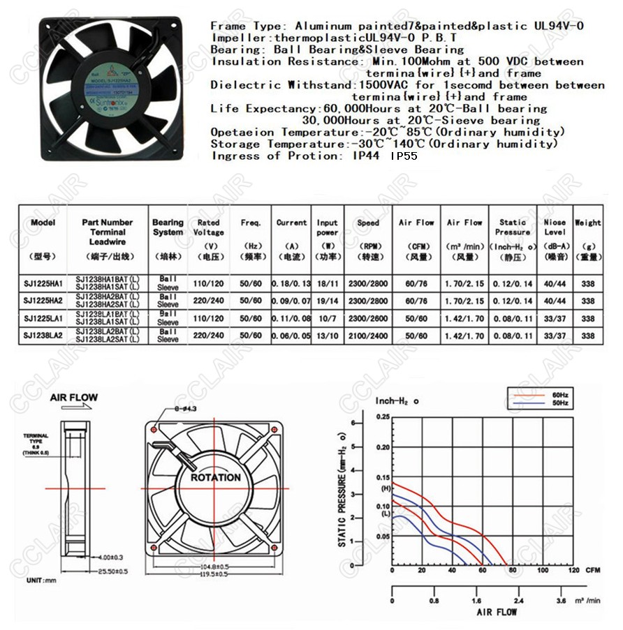 » SJ1225HA1,SJ1225HA2,SJ1225LA1,SJ1238LA2,SANJU 軸流風機