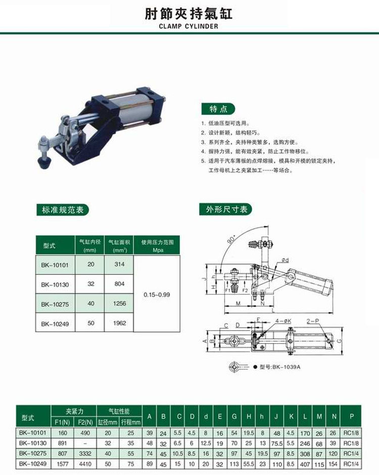 BK-10101,BK-10130,BK-10275,BK-10249,肘節(jié)夾持氣缸