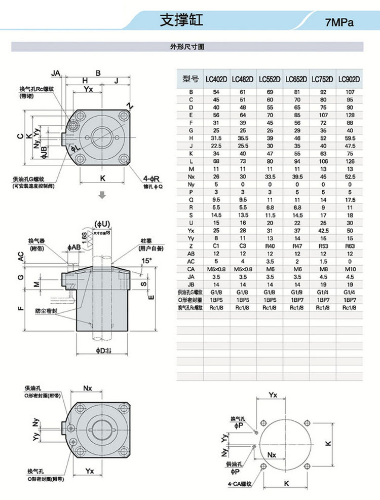 LC402D,LC482D,LC552D,LC652D,LC752D,LC902D,低壓支撐缸