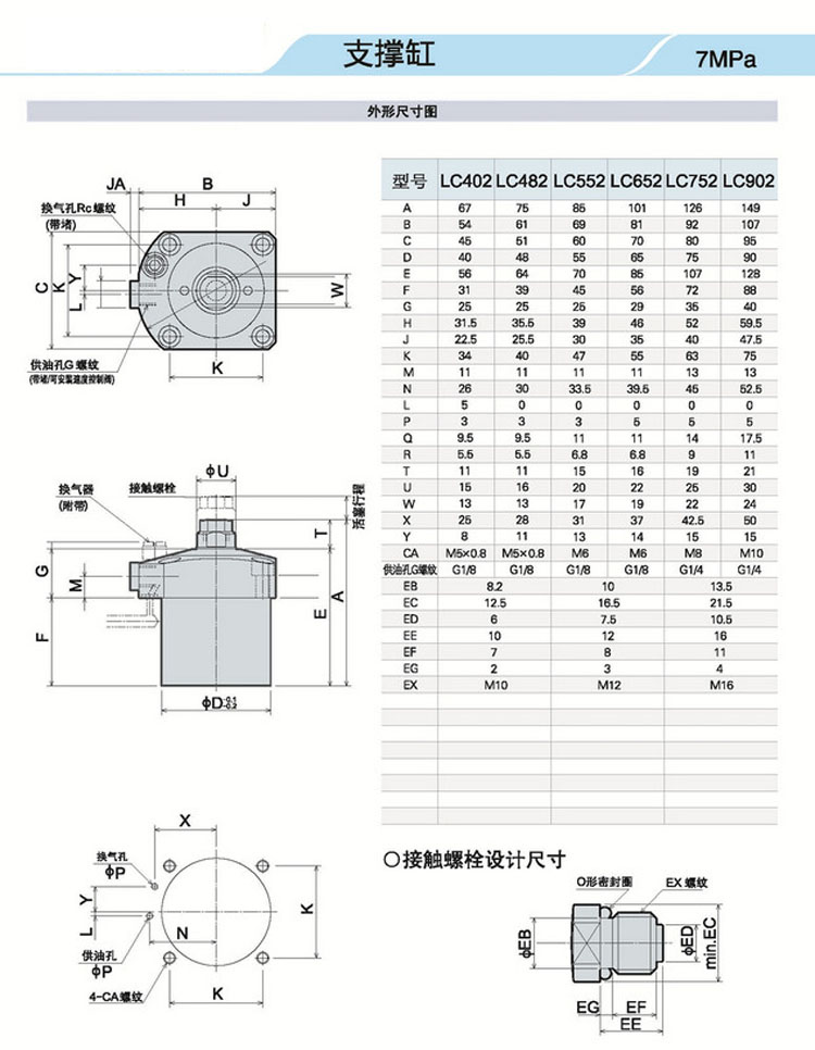 LC402,LC482,LC552,LC652,LC752,LC902,低壓支撐缸