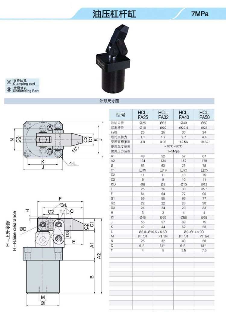 HCL,HCL-M,HCL-MF,HCL-FA,HCL-FAM,HCL-FAMT,HCL-25,HCL-M25,HCL-MF25,HCL-FA25,杠桿式油壓缸