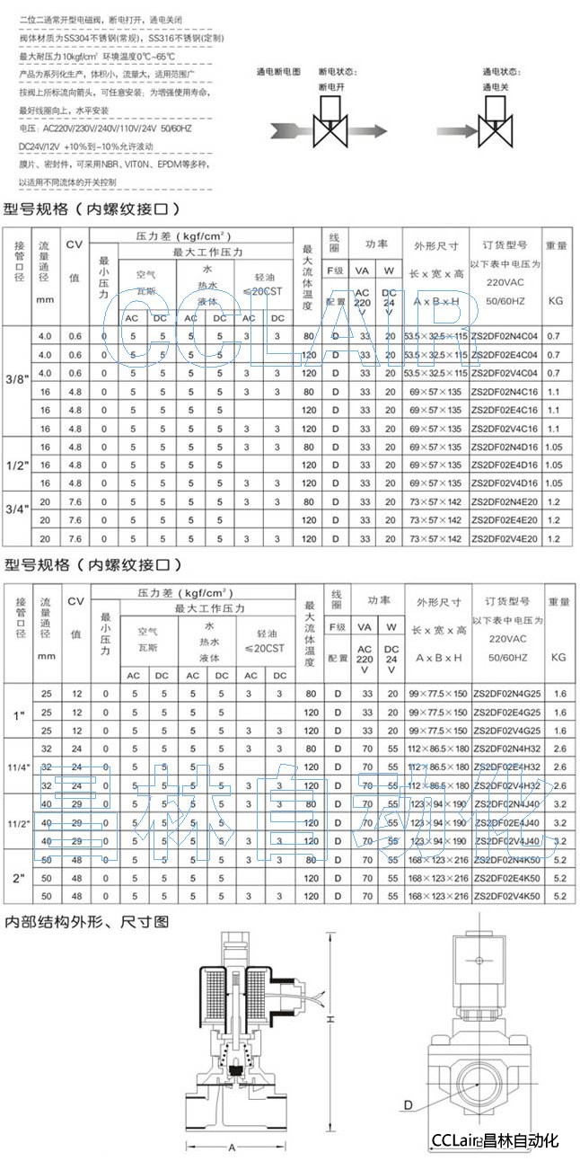 ZS2DF02N4G25,ZS2DF02E4G25,不銹鋼二位二通零壓差電磁閥(常開(kāi)型)