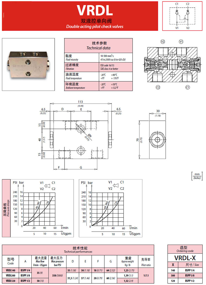 詳細信息 VRDL140,VRDL380,VRDL120,雙液控單向閥
