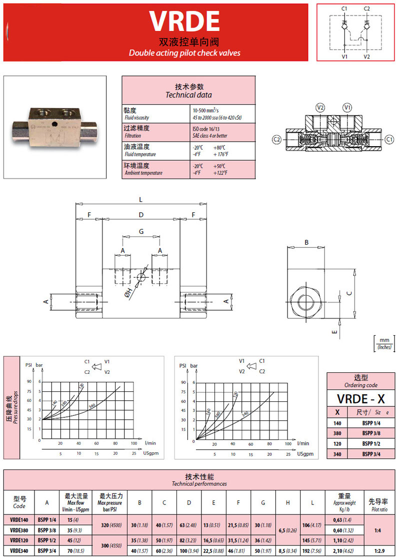 VRDE140,VRDE380,VRDE120,VRDE340,雙液控單向閥