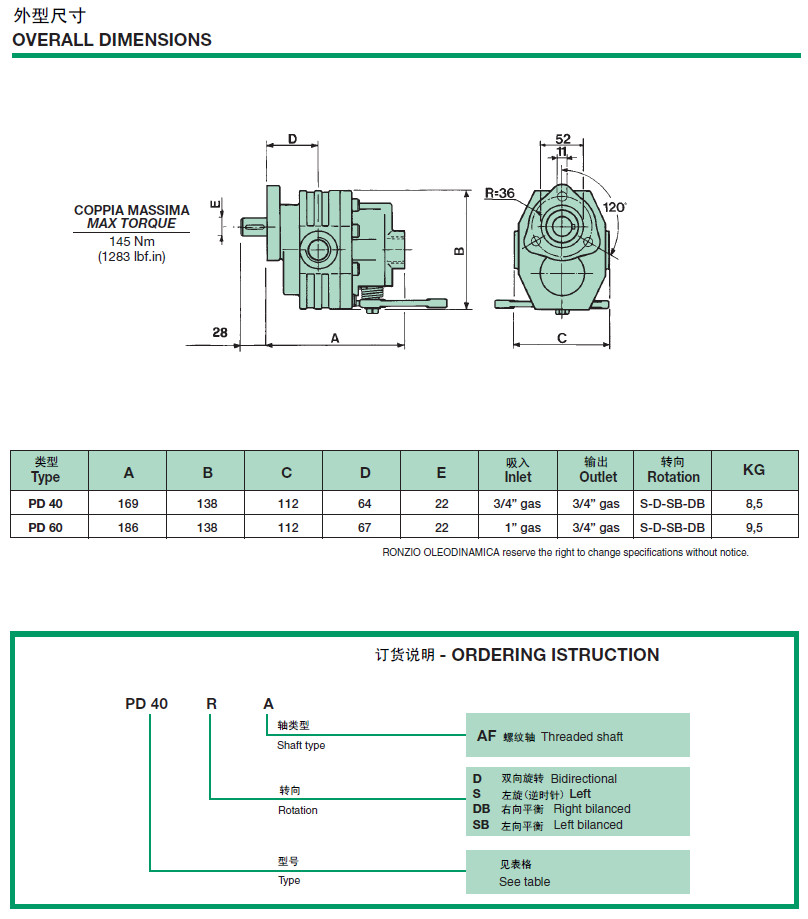 型號: PN40-D-A,PN60-D-A,PN40-S-A,PN60-S-A,PN40-DB-A,PN60-DB-A,PN40-SB-A,PN60-SB-A,齒輪泵