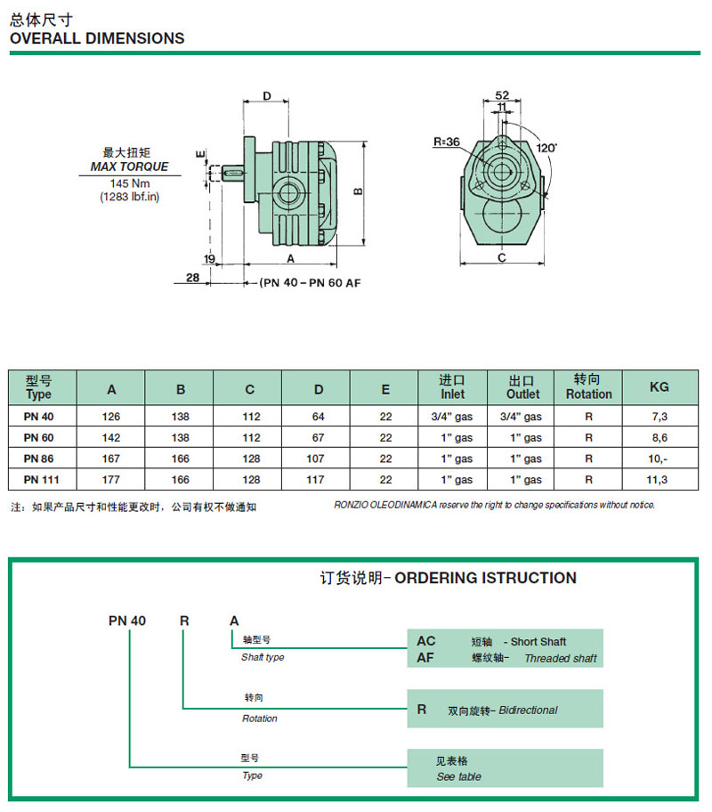 詳細信息 PN40-R-A,PN60-R-A,PN86-R-A,PN111-R-A,齒輪泵