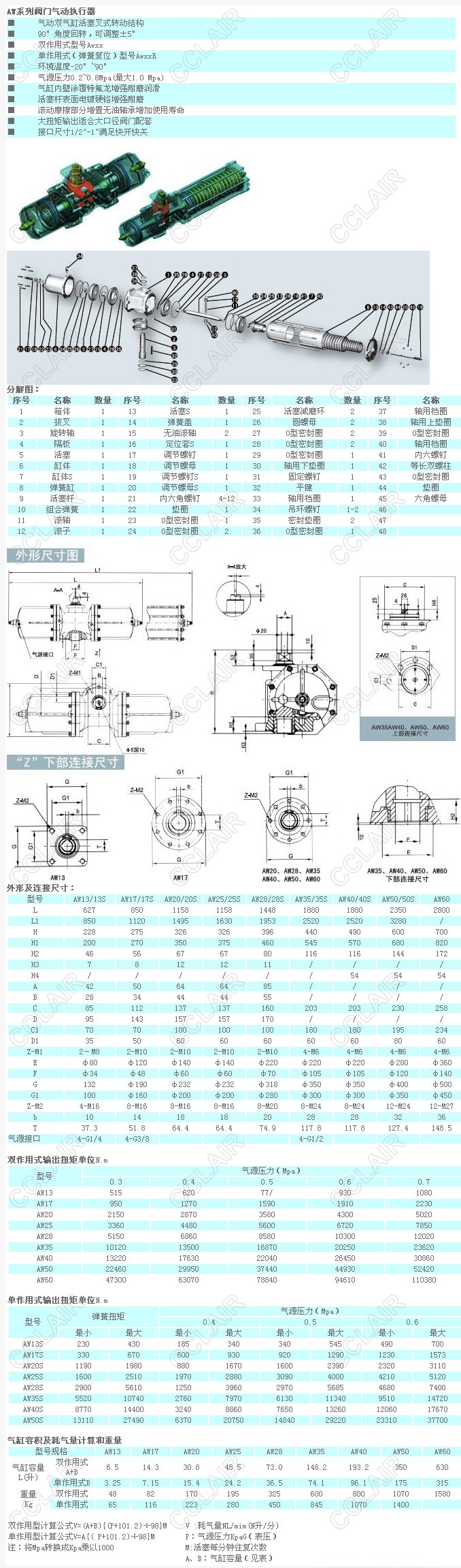 AW13,AW17,AW20,AW25,AW28,AW40,AW13S,AW17S,AW28S,AW35S,AW40S,AW50S,AW閥門氣動執(zhí)行閥