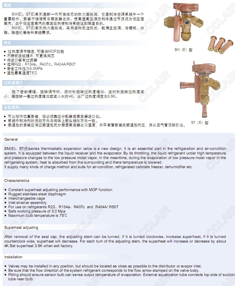 瀏覽次數(shù):2186SME-1/3H,SME-3/4H,SME-1H,SME-1.5H,SME-2.5H,SME-4H,SME-5H,SME-1/3N,熱力膨脹閥 |