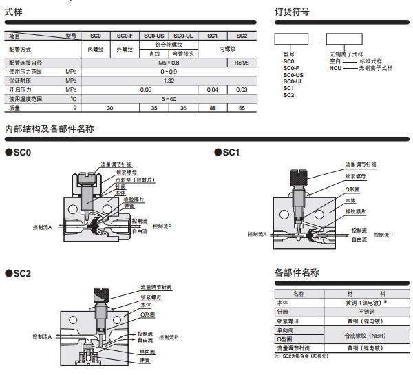 SC0,SC0-F,SC0-US,SC0-UL,SC1,SC2,節(jié)流閥SC系列