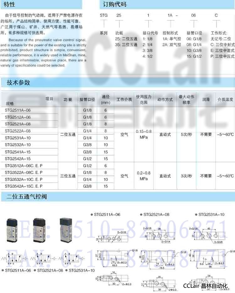 STG2511A-06,STG2512A-06,STG2521A-08,STG2522A-08,STG2531A-10,二位五通氣控閥