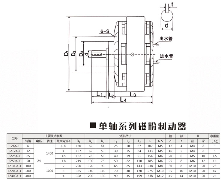 FZ6K-1,FZ12K-1,FZ25K-1,FZ50K-1,FZ100K-1,FZ200K-1,FZ400K-1,單軸磁粉制動(dòng)器