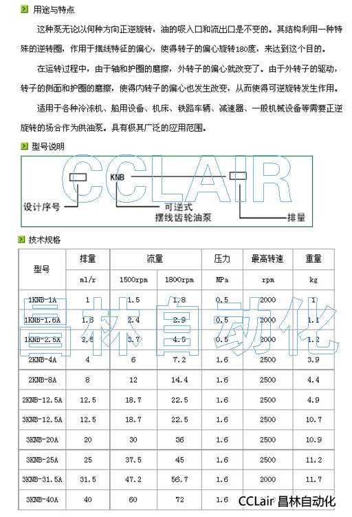 詳細(xì)信息 3KNB-12.5A,3KNB-20A,3KNB-25A,可逆式擺線齒輪油泵