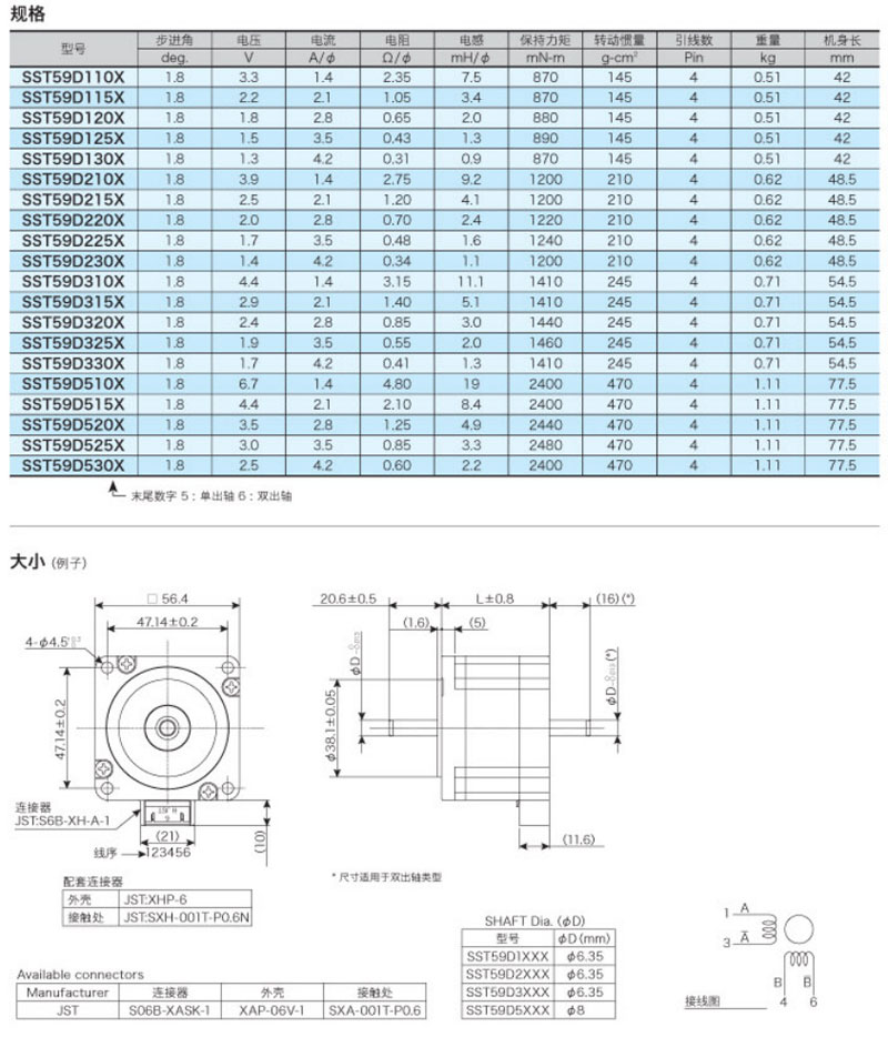 詳細(xì)信息 SST59D110X,SST59D115X,SST59D120X,SST59D125X,SST59D130X,兩相混合步進(jìn)馬達(dá)