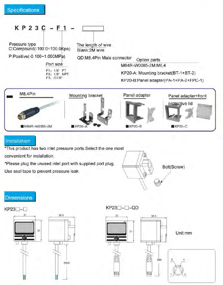 詳細(xì)信息 KP23C-F1,KP23P-F1,KP23C-F2,KP23P-F2,KP23C-F3,KP23P-F3,Shinya壓力開關(guān)