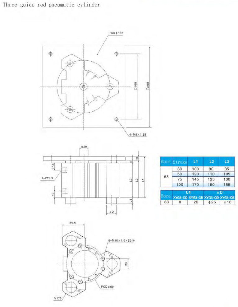型號(hào): XYG3-63-30,XYG3-63-50,XYG3-63-75,XYG3-63-100,XYG3-80-30,XYG3-80-50,XYG3-80-75,XYG3-80-100,Shinya三導(dǎo)桿氣