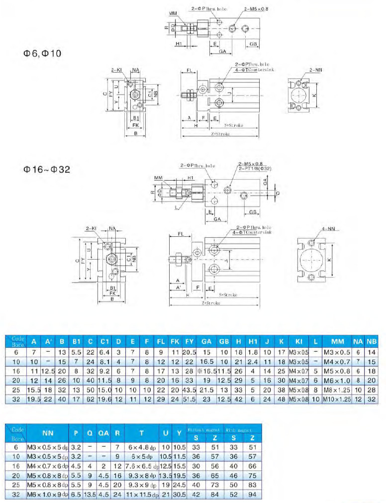 XYFA-11-6,XYFA-11-10,XYFA-11-16,XYFA-11-20,XYFA-21-6,XYFA-21-25,XYFA-21-32,Shinya氣缸