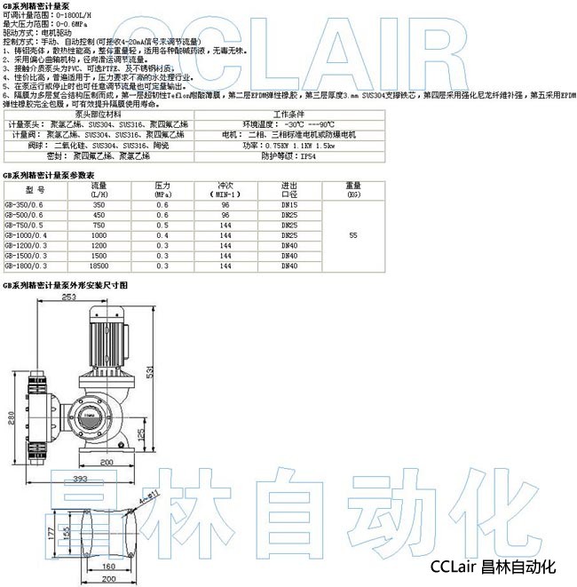 詳細(xì)信息 GB-350/0.6,GB-500/0.6,GB-750/0.5,GB-1000/0.4,精密計量泵