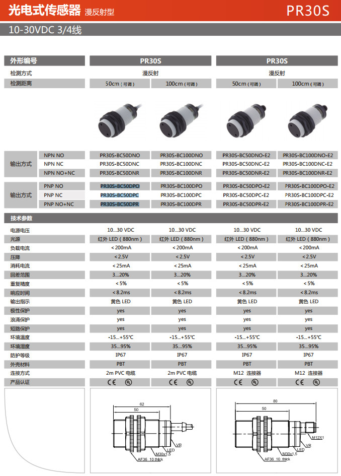 型號(hào): PR30S-BC50DNO,PR30S-BC50DNC,PR30S-BC50DNR,PR30S-BC50DPO-E2,PR30S-BC50DPC-E2